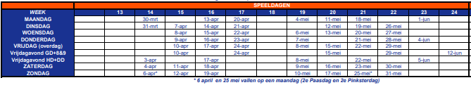 De speeldata: